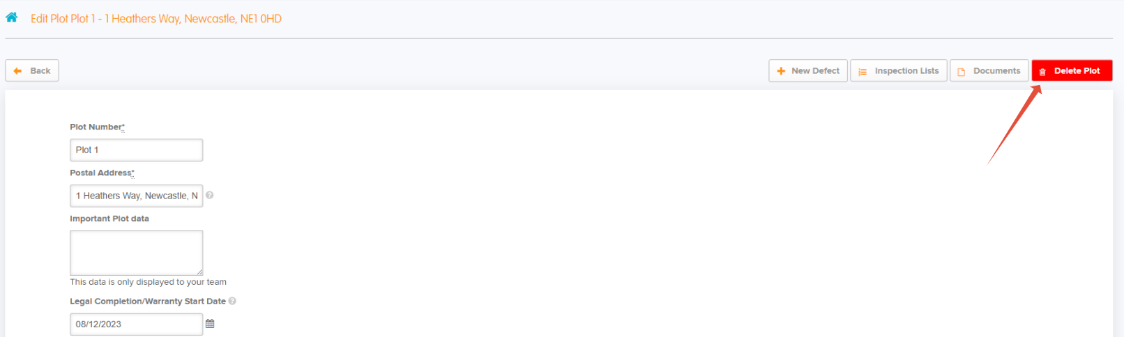 Plots & Scheme can only be deleted if there are no Defects or Inspection Lists associated to the plots within the Scheme.