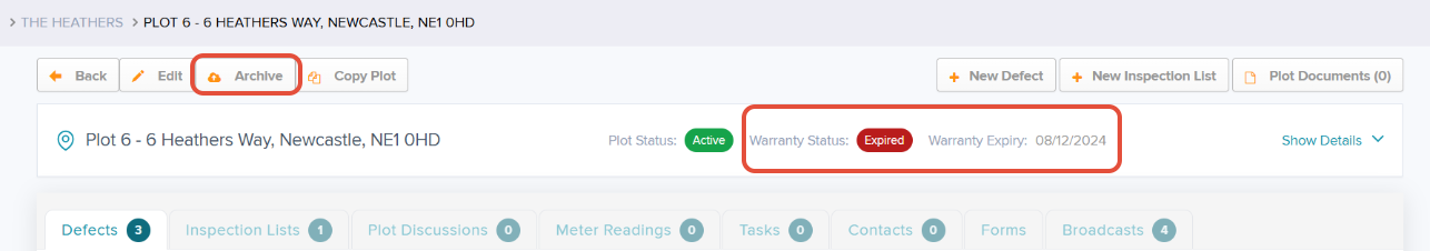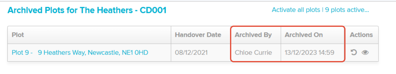 Once the plot is archived, this information will be updated will be updated against the plot details recording when the plot was archived & by which user.