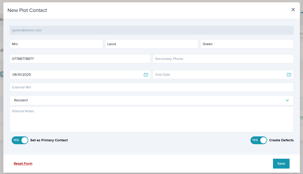 There is an option to add 'End Dates' to your plot contacts to help control access to Defect information when a Resident has left a property, and a new Resident has moved in.