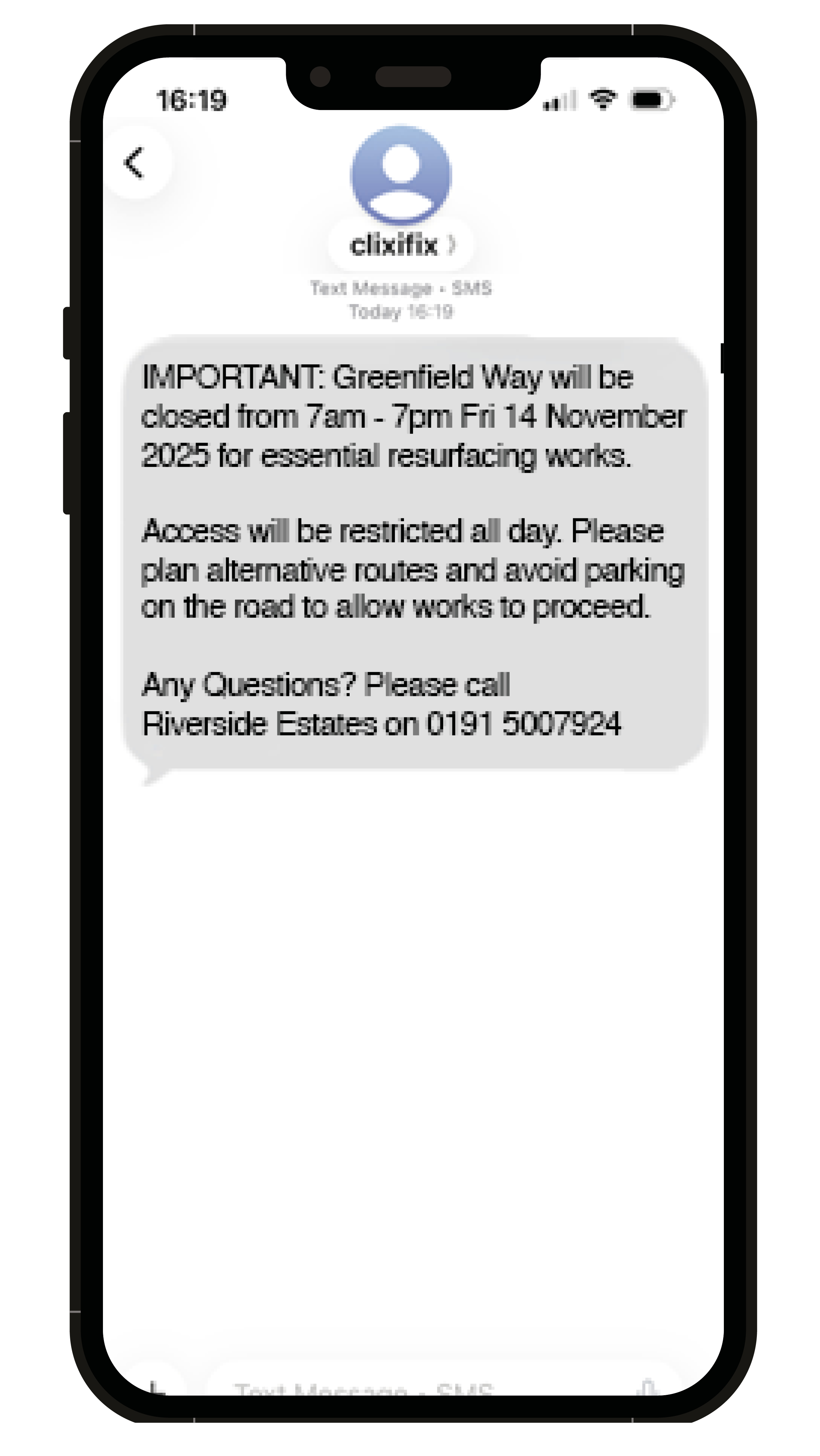 The alpha tag (sender) of the SMS will show as clixifix, as shown in the example below.