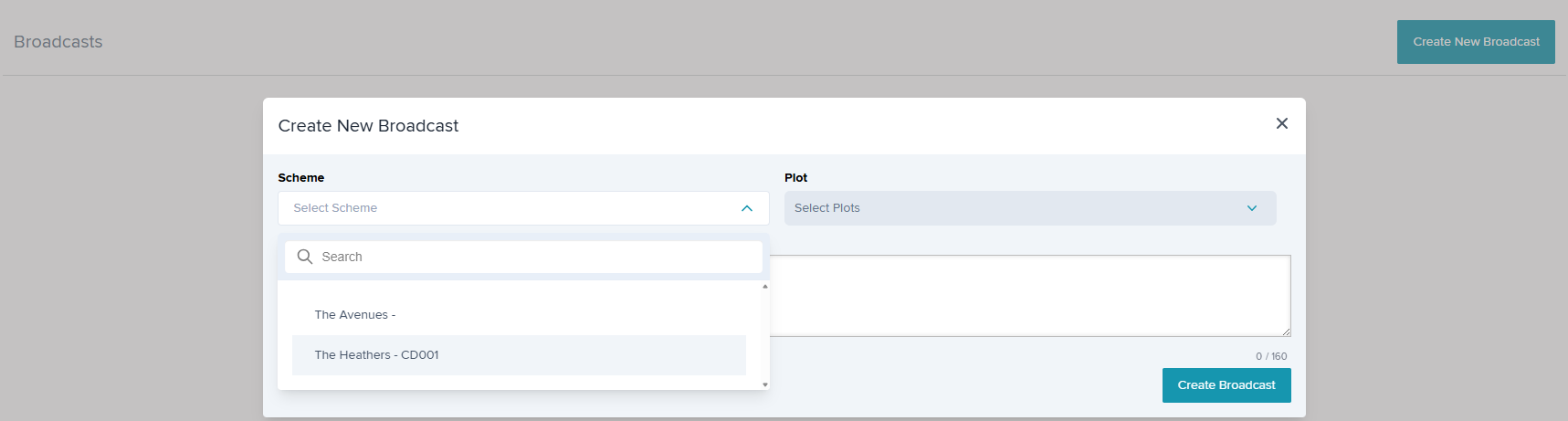 All Broadcasts will be recorded in the Admin > Broadcasts, showing when the broadcast was sent & plot count for that scheme.