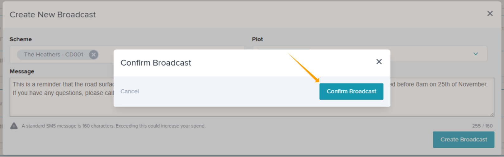 Step 6: Confirm you wish to send the broadcast.