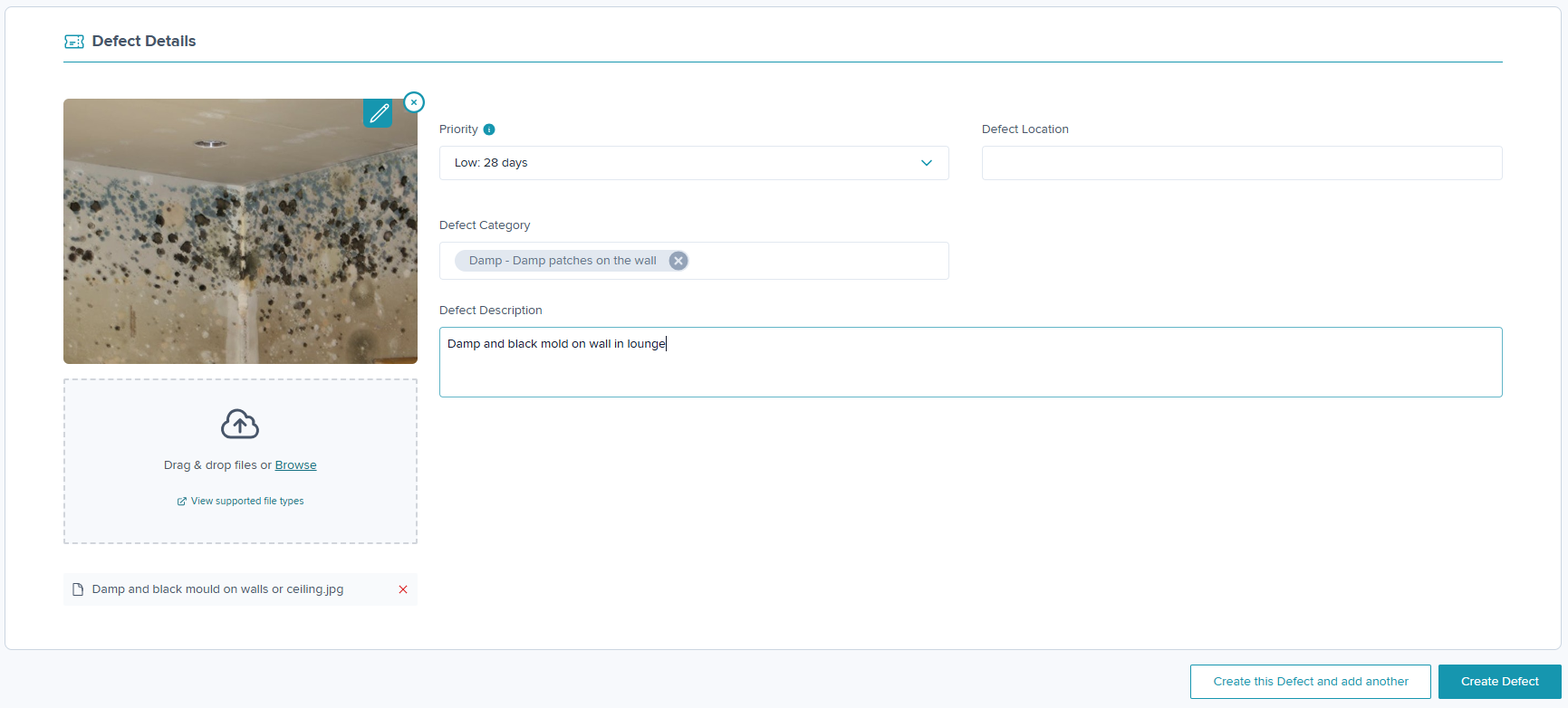 Step 6: Once complete, click on Create Defect or if you have another Defect to add click on Create this Defect and add another.